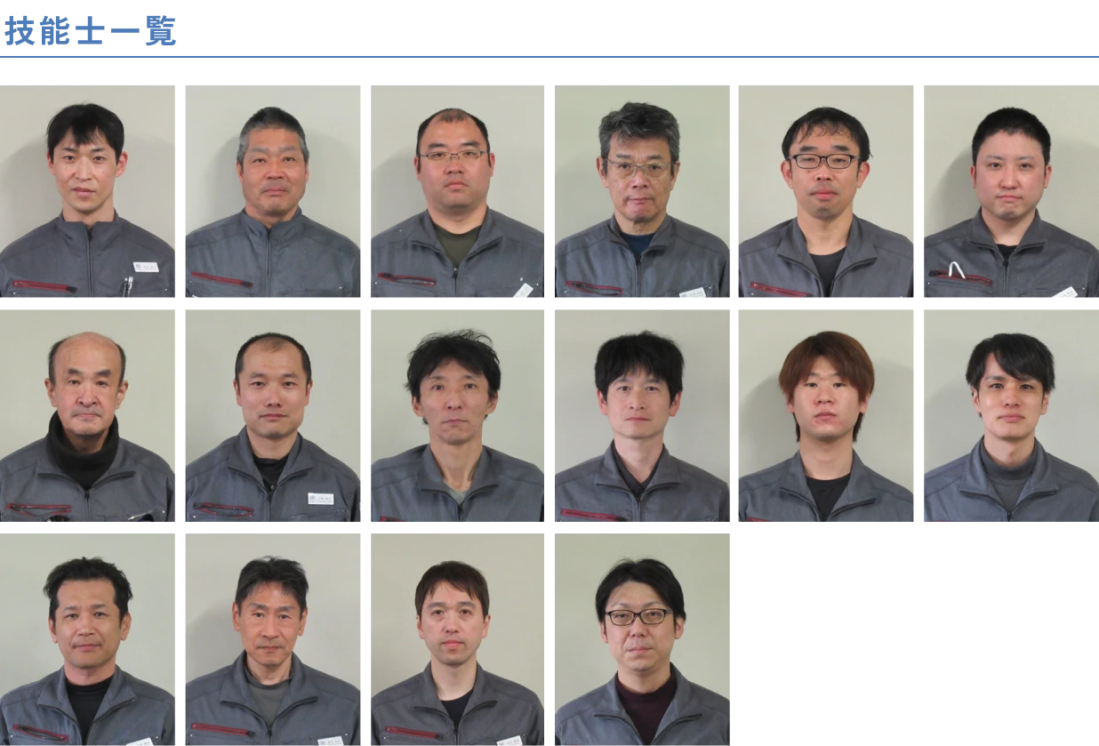 「技能士」の取得を推進する事により、技術技能の向上を計ると共にISO9001/ISO14001認証の定期サーベイランスにより、経営、品質、環境、QCDS改善を毎月継続して行っています。